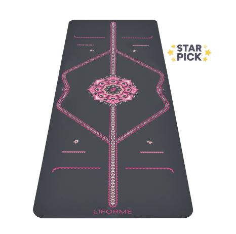 Liforme mats are also popular for their alignment indicators on the mat’s surface to assist with proper hand and foot placement. This can be helpful for both novice students as they master the basic poses and advanced practitioners as they improve posture. Improved alignment can enhance body awareness and increase efficacy and safety in the long run.